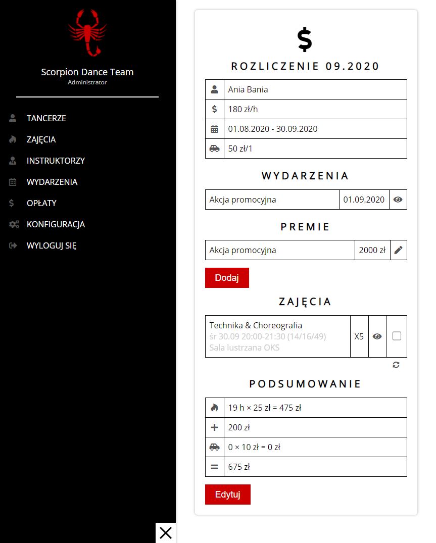 Web application supporting the management of the school, created for dance teams, language schools and sports clubs.