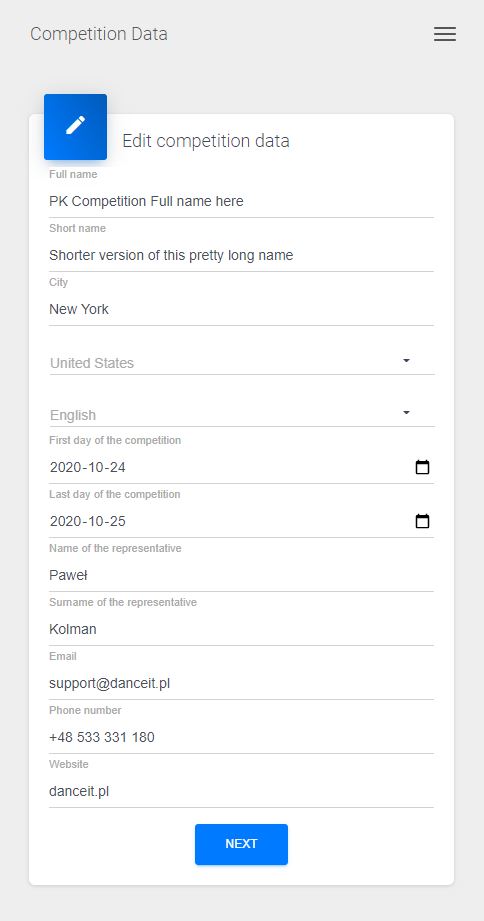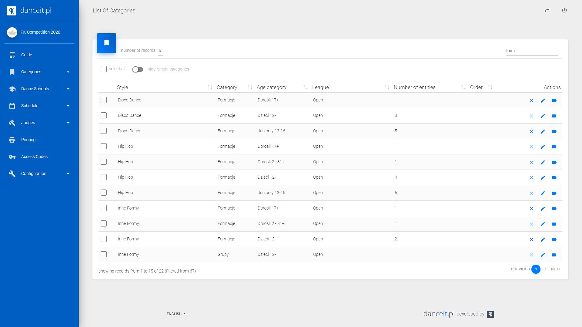 Web application supporting the organization of dance competitions, created by me from the idea, through the database design, back-end, front-end, to release and distribution.