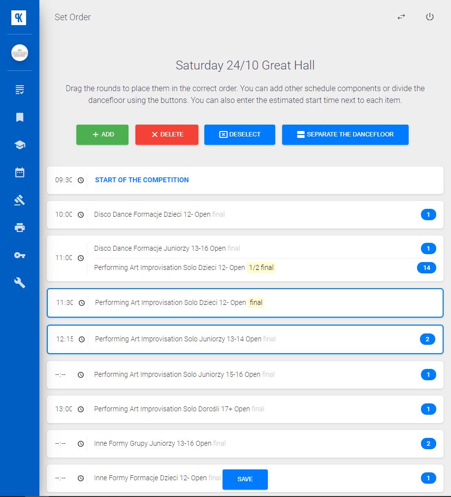 Supports registration, applications control, live schedule, scoring, mailing, integrating with LED displays and a lot of useful dance world stuff.